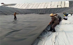 人工湖城市河道治理膨潤土防水毯施工鋪設現場